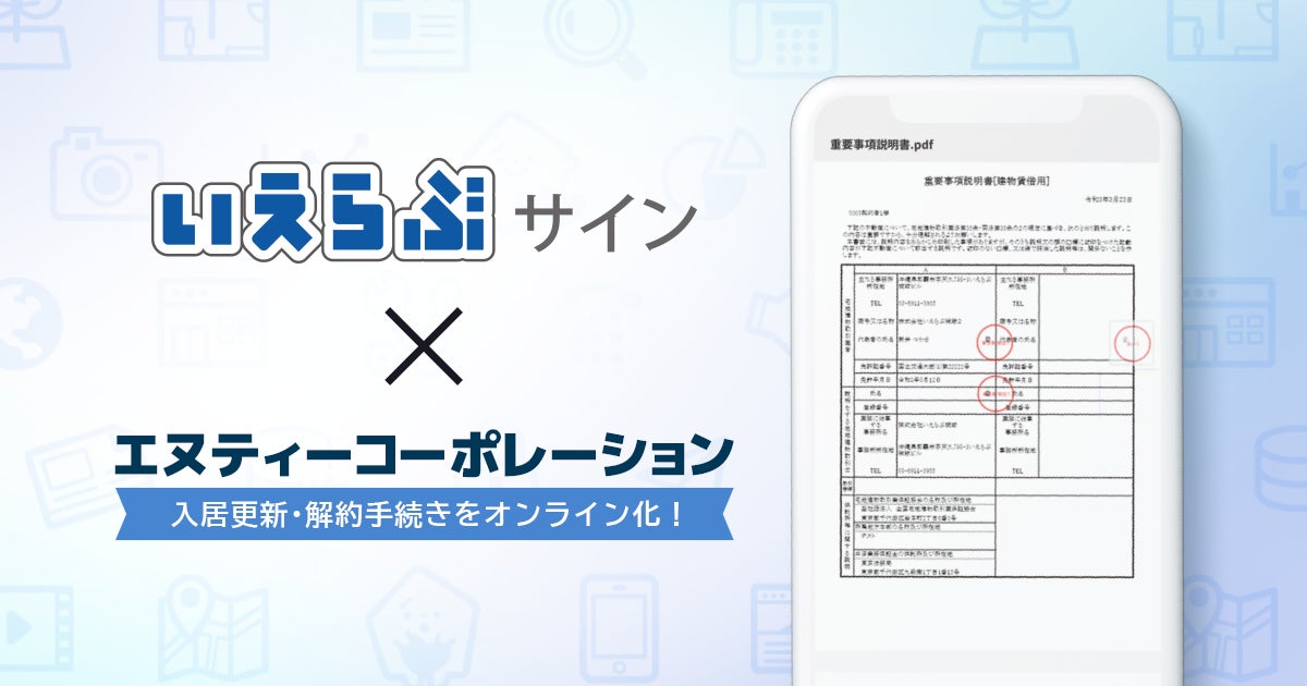このたびの「いえらぶサイン」導入により、エヌティーコーポレーションが管理する約3,000戸において、入居・更新・解約対応の手続きをオンラインで行えるようになります。