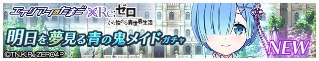 株式会社パオン・ディーピー(代表取締役:⽊原 海俊、本社:東京都北区)は、スマートフォン向けゲームアプリ『エイリアンのたまご(以下エリたま)』において、『リゼロ』こと大人気TVアニメ『Re:ゼロから始める異世界生活』とのコラボガチャを開始することをお知らせいたします。