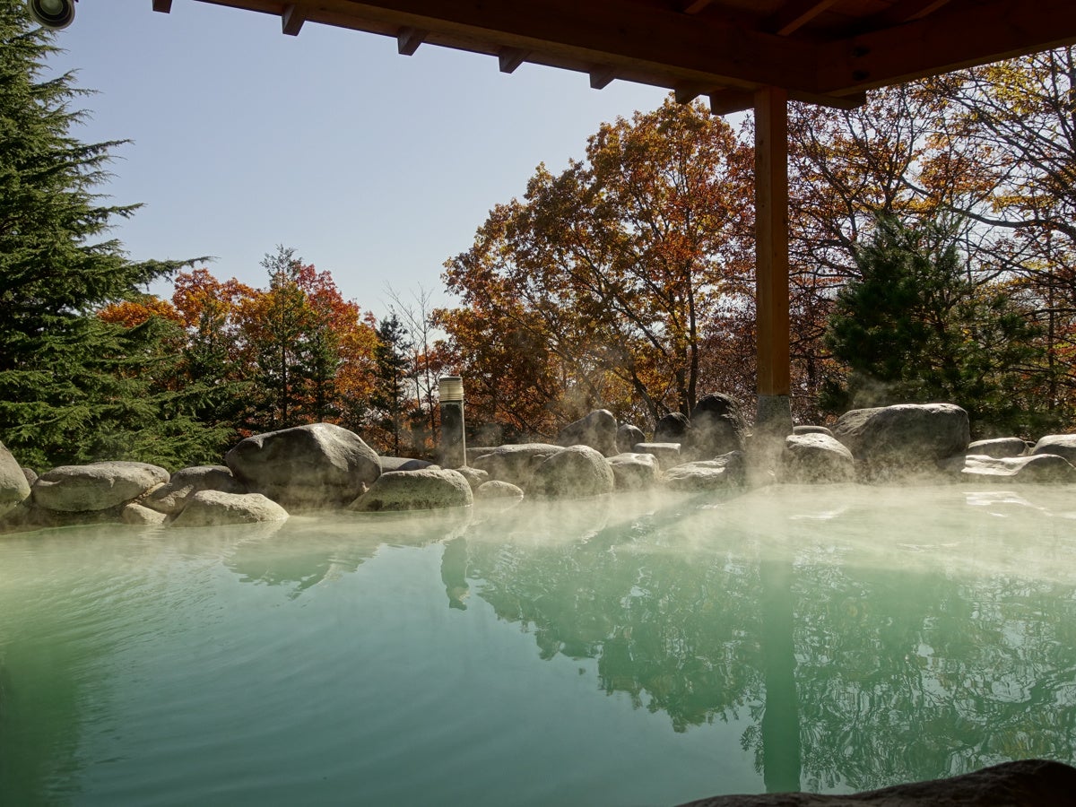 露天風呂は湯治にも用いられる鹿の湯を源泉としています。白く濁り少しとろみのある酸性含硫黄泉は様々な健康増進効果が期待できる他、入浴後のお肌はしっとりと滑らかで美肌効果も期待できます。