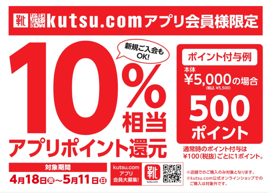 この機会にお得なkutsu.comアプリにご入会ください。