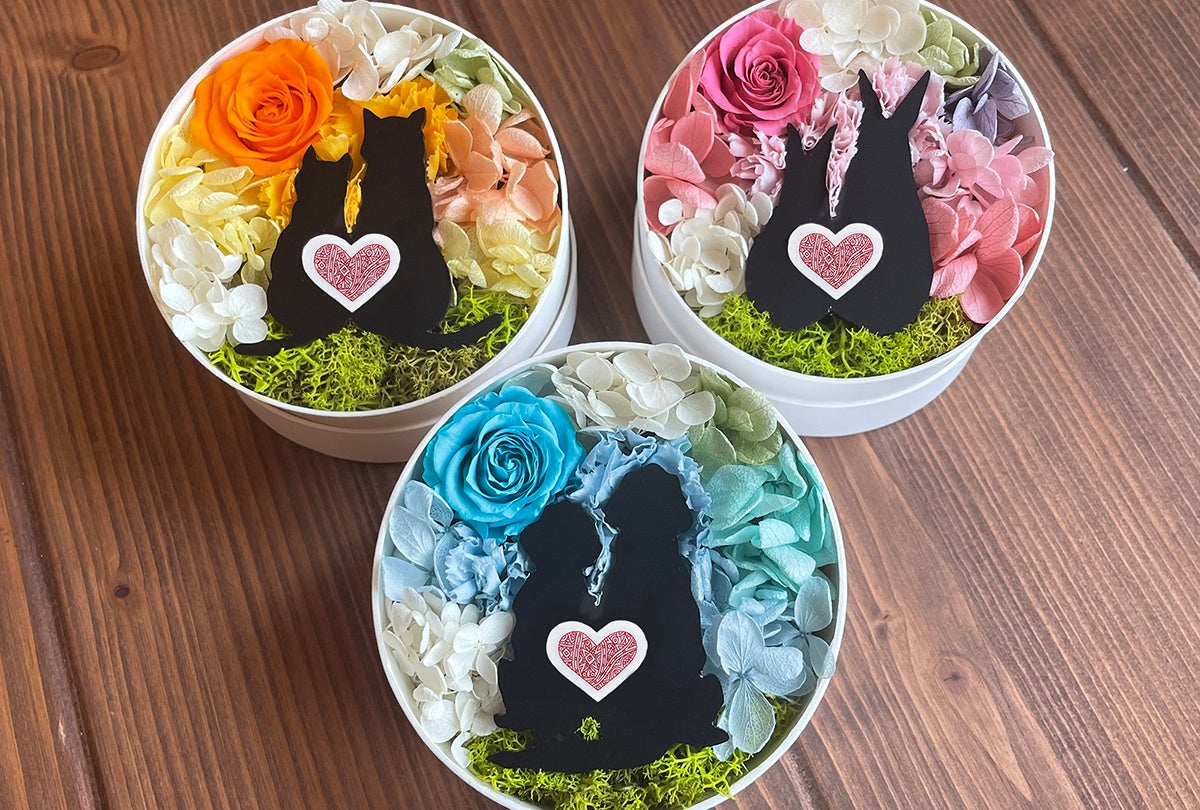 ペットの似顔絵フラワーやキャラクターフラワーを制作するネットショップ「動物のお花屋さんマイペリドット」を運営する株式会社岡田商会(所在地:兵庫県西宮市、店長:小原冬萌)は自社オンラインショップにて、2匹の動物が寄り添うシルエットを描写した丸型のフラワーBOX「petit harmony(プチ・ハーモニー)」の販売を開始いたしました。