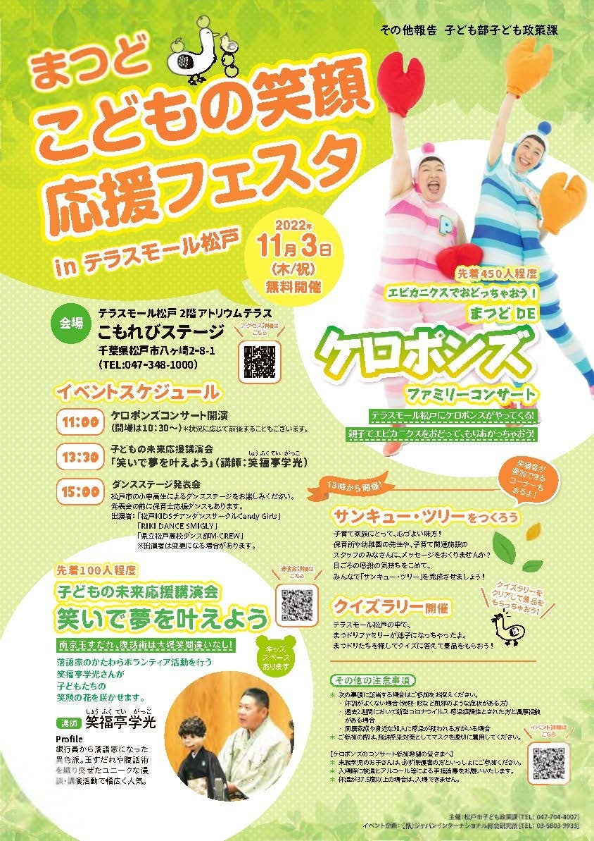 11月3日(木・祝)「まつどこどもの笑顔応援フェスタinテラスモール松戸」開催