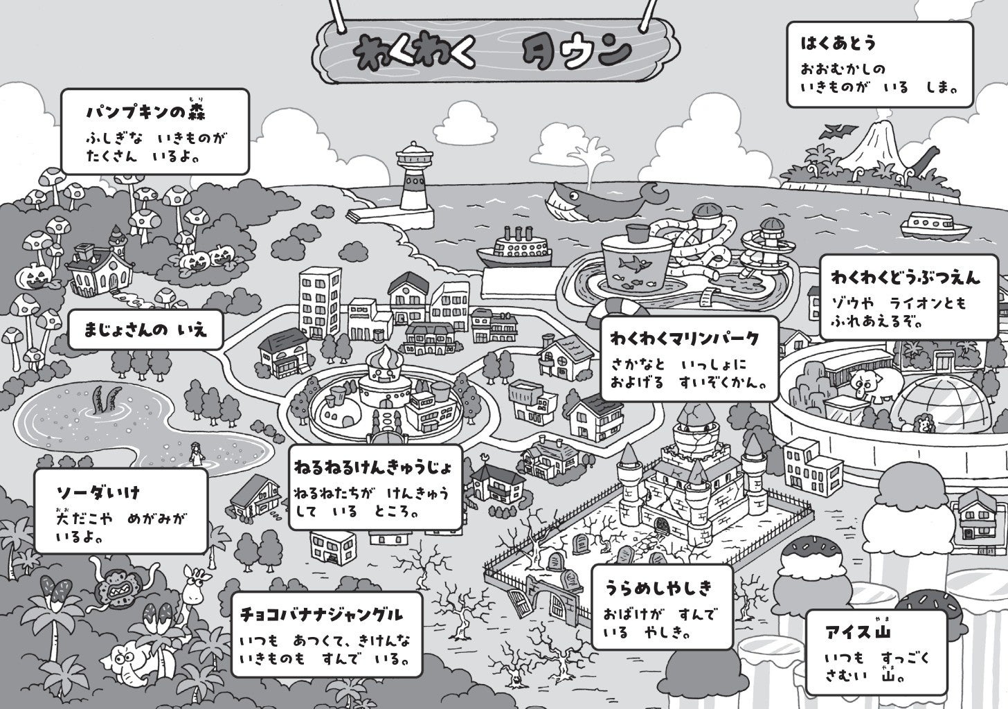 本書では、「ねるね」たちが活躍する5つのお話が収録されています。それぞれのお話には、迷路やパズルなど、お子様に楽しんでいただける様々な要素を盛り込みました。本の最後には、「ねるねるねるね」の色が変わる秘密も解説しており、「酸性/中性/アルカリ性」や、炭酸ガスなど、ちょっとした理科の勉強としてもお楽しみいただけます。