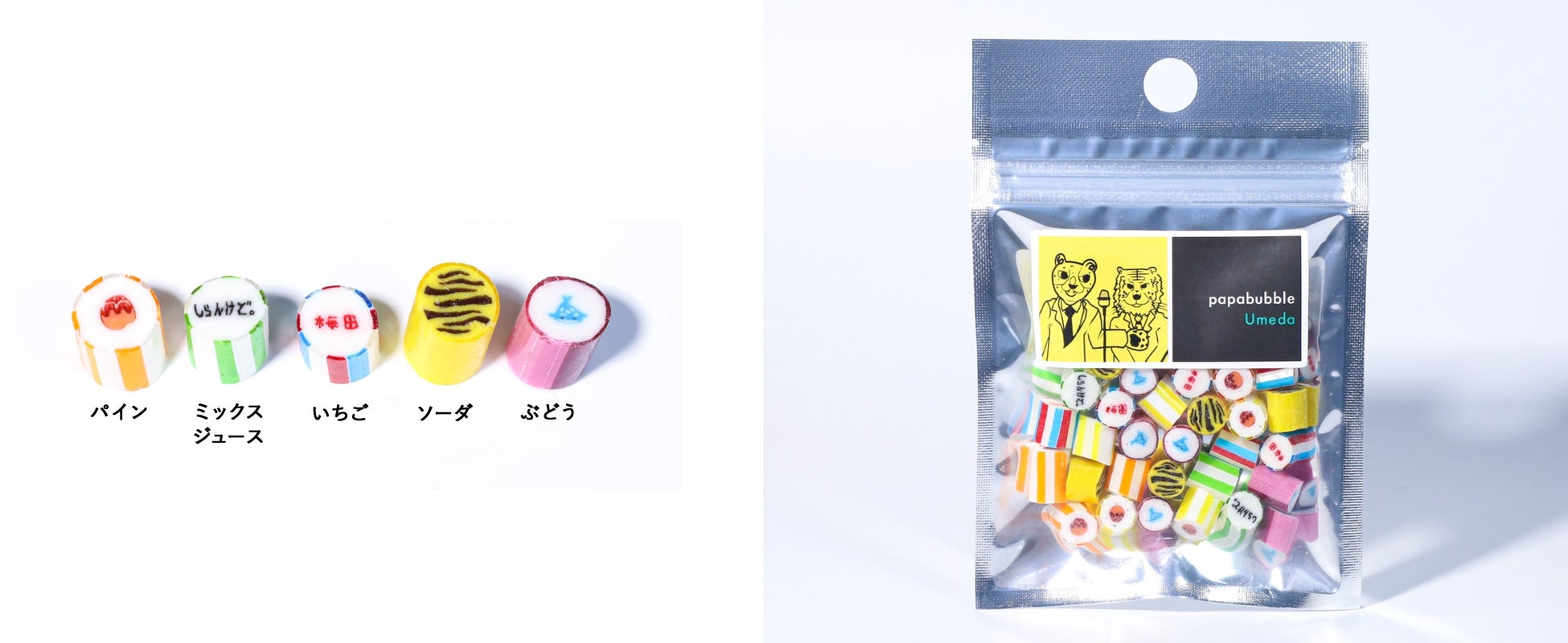 当初より人気の「しらんけど。」の柄はそのままに、「トラ」や「ジンベイザメ」など梅田で馴染みのあるモチーフを、お子様から大人の方まで大阪土産として手に取りやすいデザインで仕上げました。フルーツ系のフレーバーを多く使用しているので、ミックスジュースやソーダと一緒にお召し上がりいただくのもおすすめです。