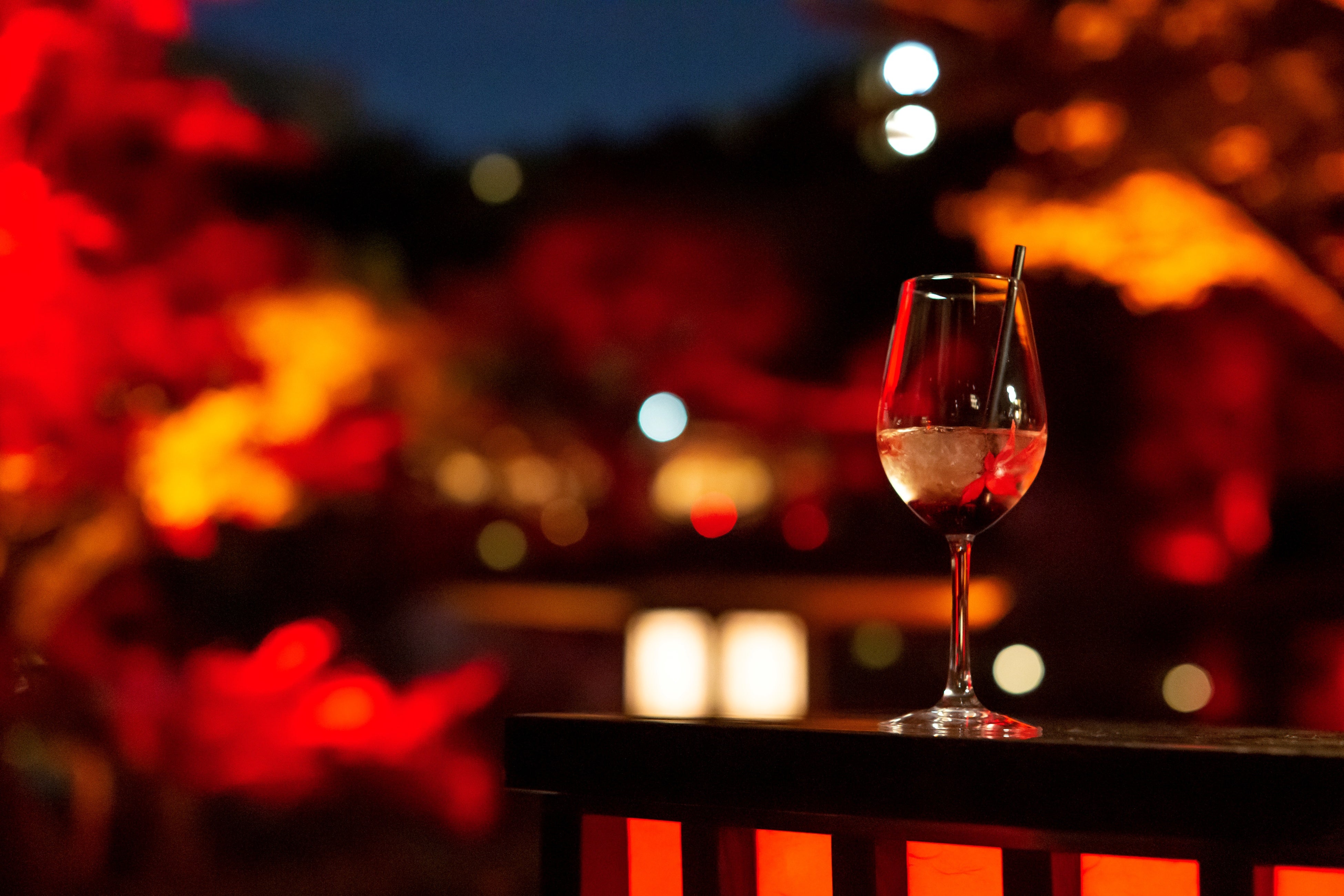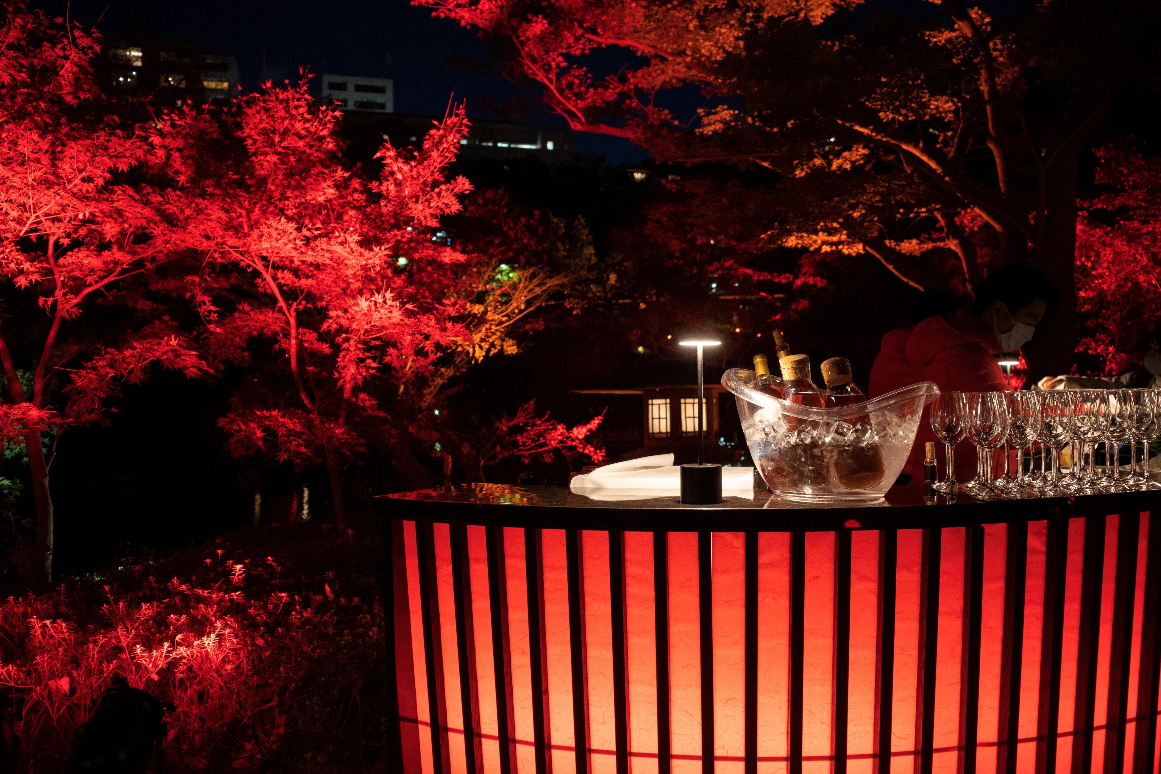 12月になると週末限定のポップアップバーが登場いたします。(金・土・日曜日限定/計5日間) 秋色を纏った幻想的な庭園で、ここでしか味わうことの出来ない見た目も華やかな “赤い”オリジナルカクテルをはじめとするおすすめの赤ワイン・ロゼワインなど、グラスの中でも紅葉を楽しめる趣向を凝らした大人のバーをご堪能ください。