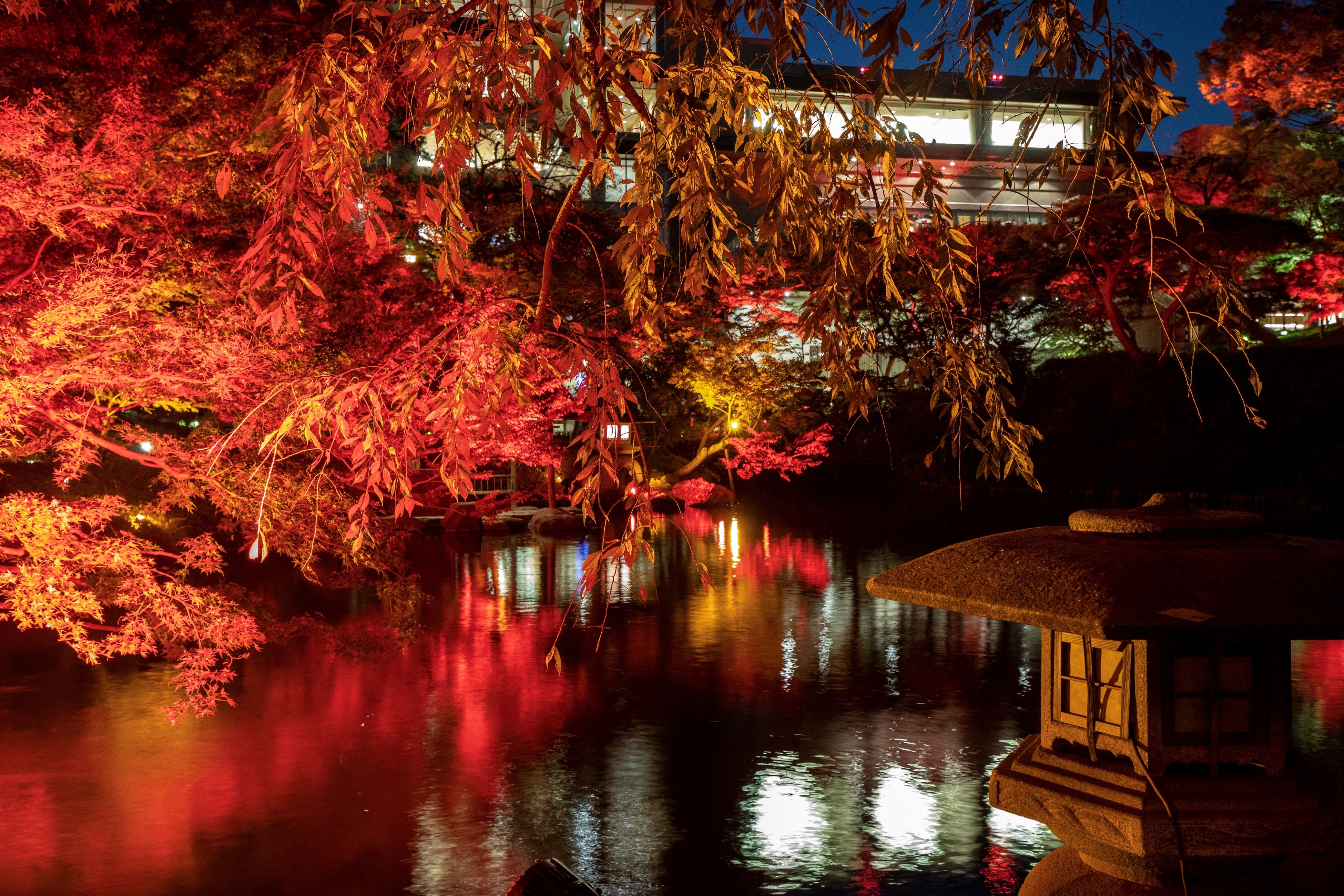 夜空に、水面に、一面が赤に染まる特別ライトアップを11月10日(金)~12月10日(日)まで実施