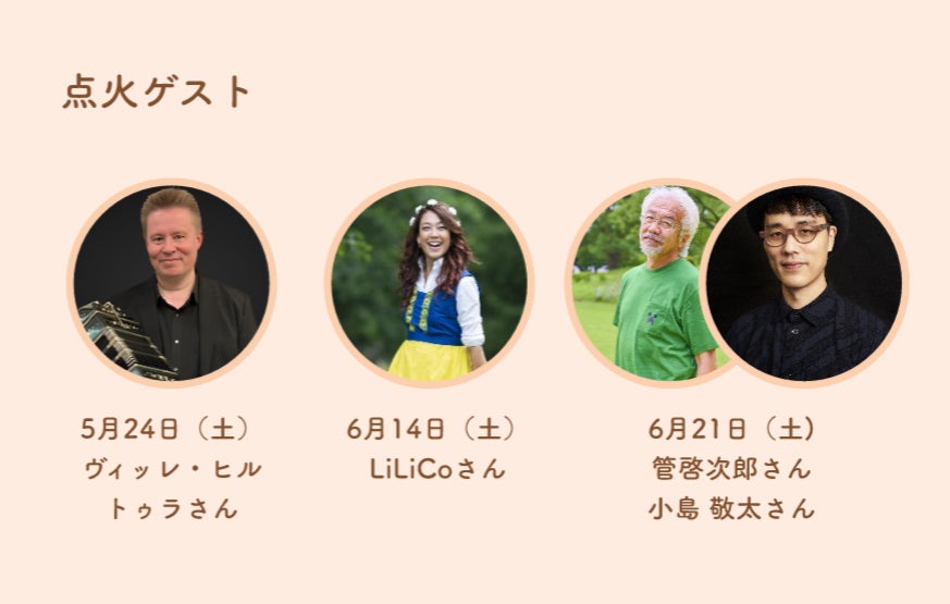 メインイベントは、北欧で初夏の到来を祝う「ミッドサマーセレモニー」として、北欧ゆかりのゲストが「夏至のかがり火」を点火し、火を囲んで誰でも参加できるダンス体験イベントを実施。セレモニーのための花冠づくりのワークショップや北欧マーケットも開催されます。