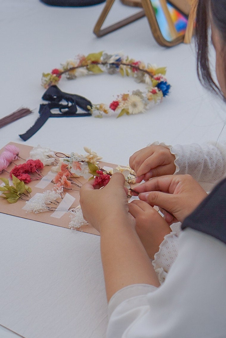 夏至祭のマストアイテム、オリジナルの「花冠」を作るワークショップも同時開催。