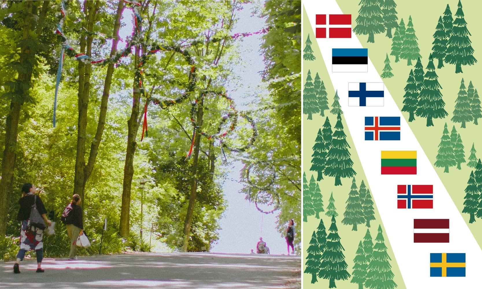□毎日見られる!国旗をイメージした巨大花冠装飾「北欧8ヶ国の花冠ロード」や北欧の本200冊がそろった「ミッドサマーライブラリー」