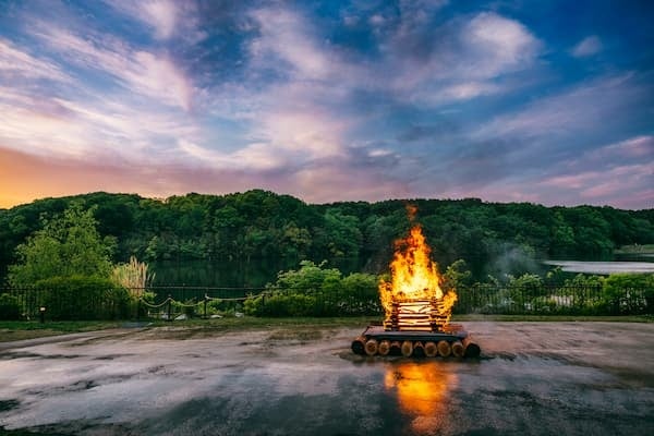 メッツァでは、地元・飯能の木材「西川材」の間伐材を使用してかがり火を実施。燃え盛るかがり火とともに、湖畔で夏の訪れをお祝いしましょう。