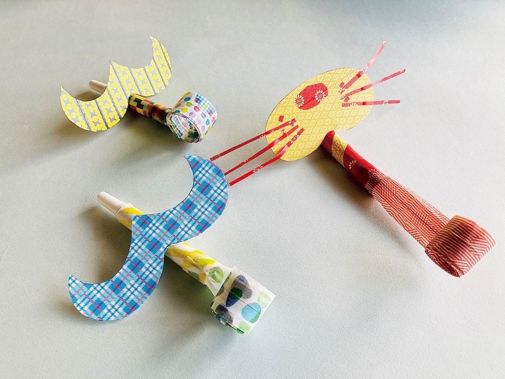 おひげも作って、びゅーっと息をふきかけてあそんでみましょう。