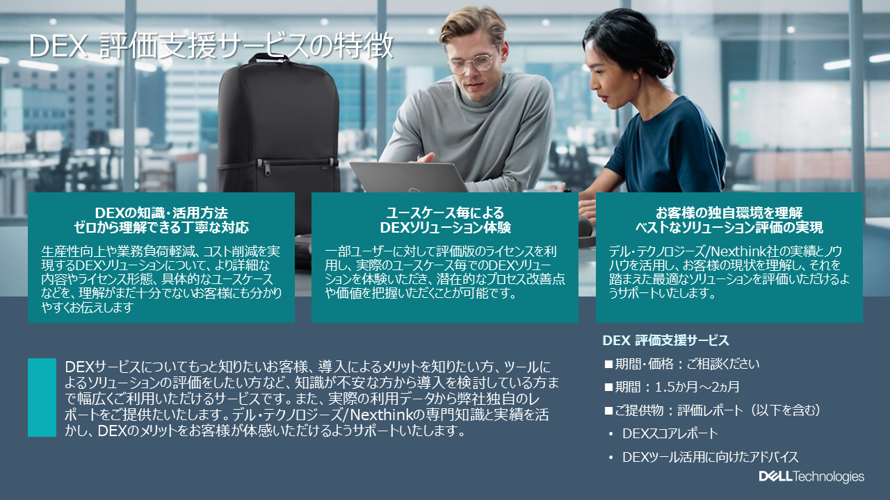 デル・テクノロジーズ株式会社 執行役員 サービスビジネス営業統括本部 サービスプリセールス本部 本部長 清水聡泰は、次のように述べています。「お客様が目指す次世代ワークプレースの実現に向け、Nexthink社の先進的なDEXツールと当社の知見を掛け合わせ、データに基づく改善サイクルと中長期的な運用コスト削減の両立に貢献してまいります」。