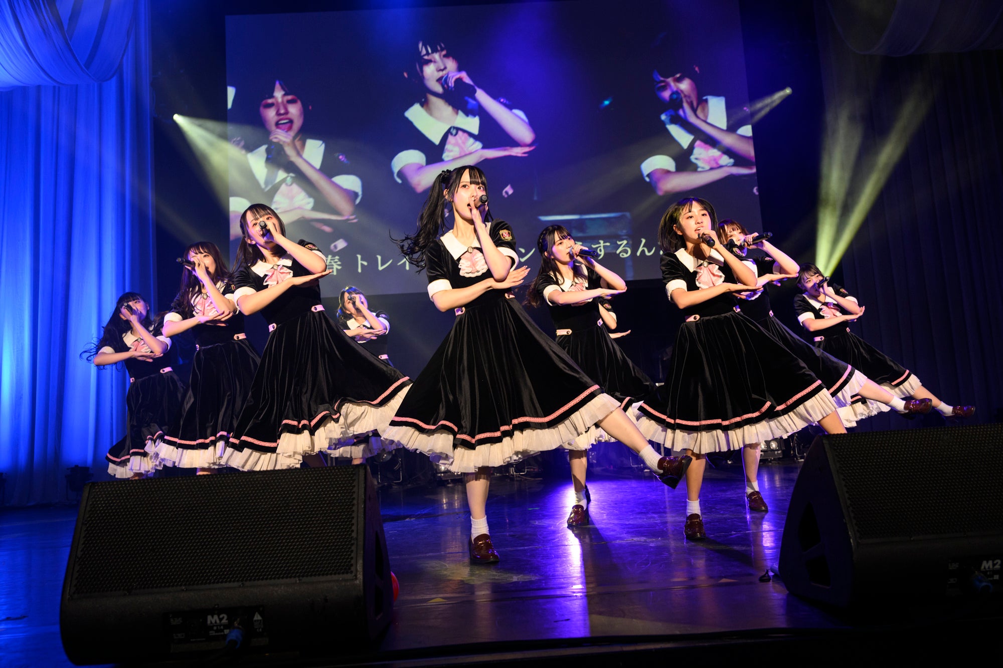 明転後、先日初披露したばかりの「女の子は強い」を披露。可愛くて強い女の子を表現した。ここで、グループの顔でもある松本ももなが
