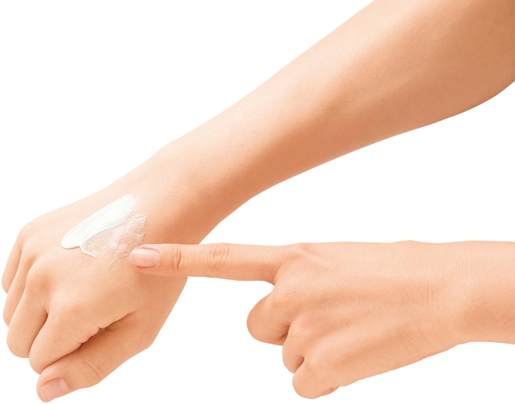 〇みずみずしく、伸ばしやすいテクスチャー。べたつかずにすぐになじむので忙しい朝に便利に使用できます。
