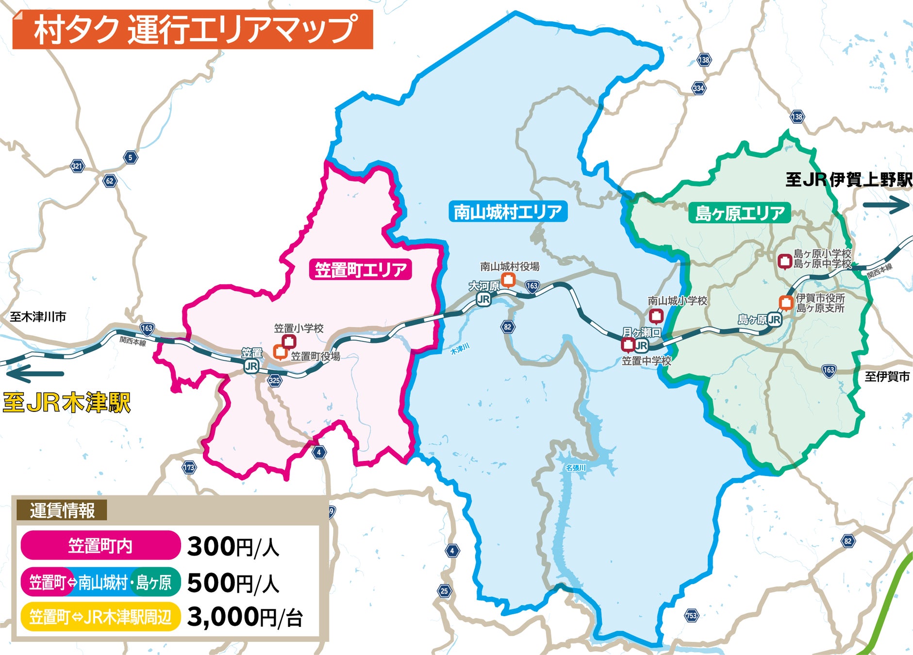 【運行エリア】 京都府笠置町全域、笠置町⇔南山城村・島ヶ原・木津駅