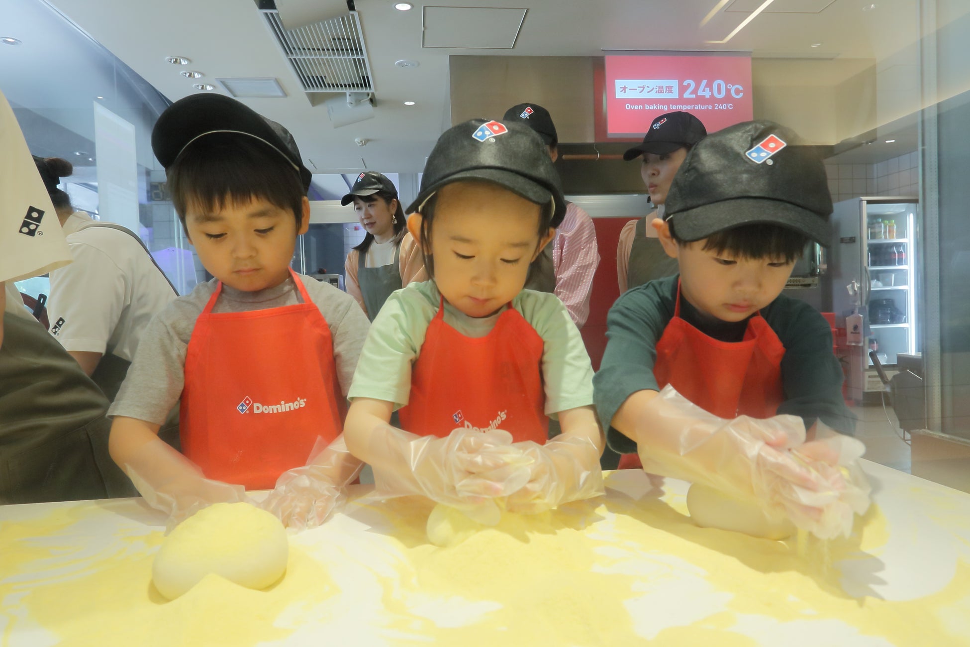 内容:ピザ作り体験、ピザお持ち帰り、認定証授与、ドミノ・ピザオリジナルのエプロンとキャップをプレゼント※