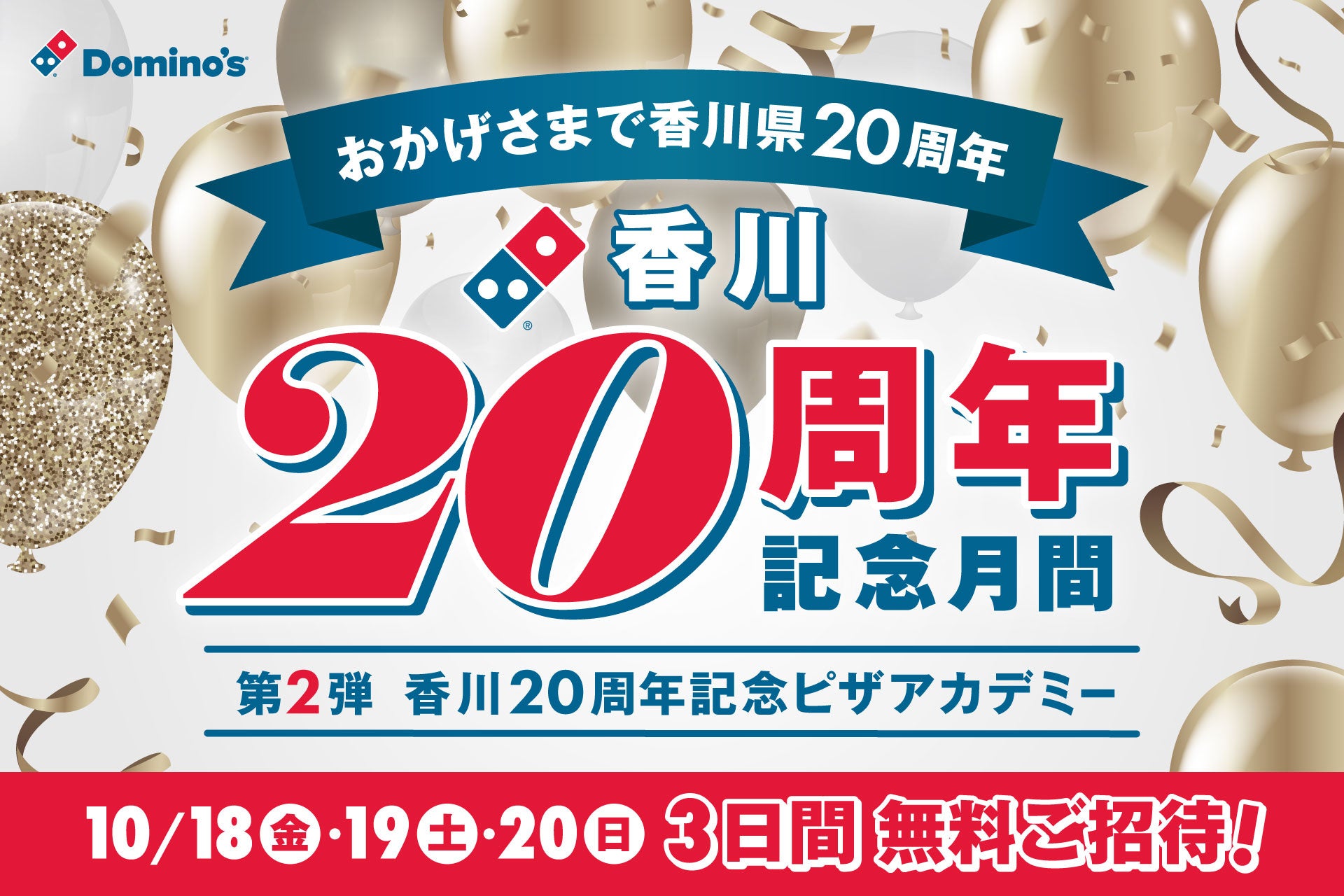 ドミノ・ピザ、「香川20周年記念月間」第2弾 県内6店舗でピザアカデミーに無料ご招待 10月18日、19日、20日の3日間各店舗・各日先着1組4名様まで、10月12日13時~募集開始!
