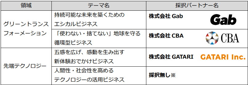 ※「人間性・社会性を高めるテクノロジーの活用ビジネス」には、多数の応募をいただき、NTT西日本との共創ビジネスの検討を行いましたが、厳正な審査の結果、今回は採択無しとなりました。