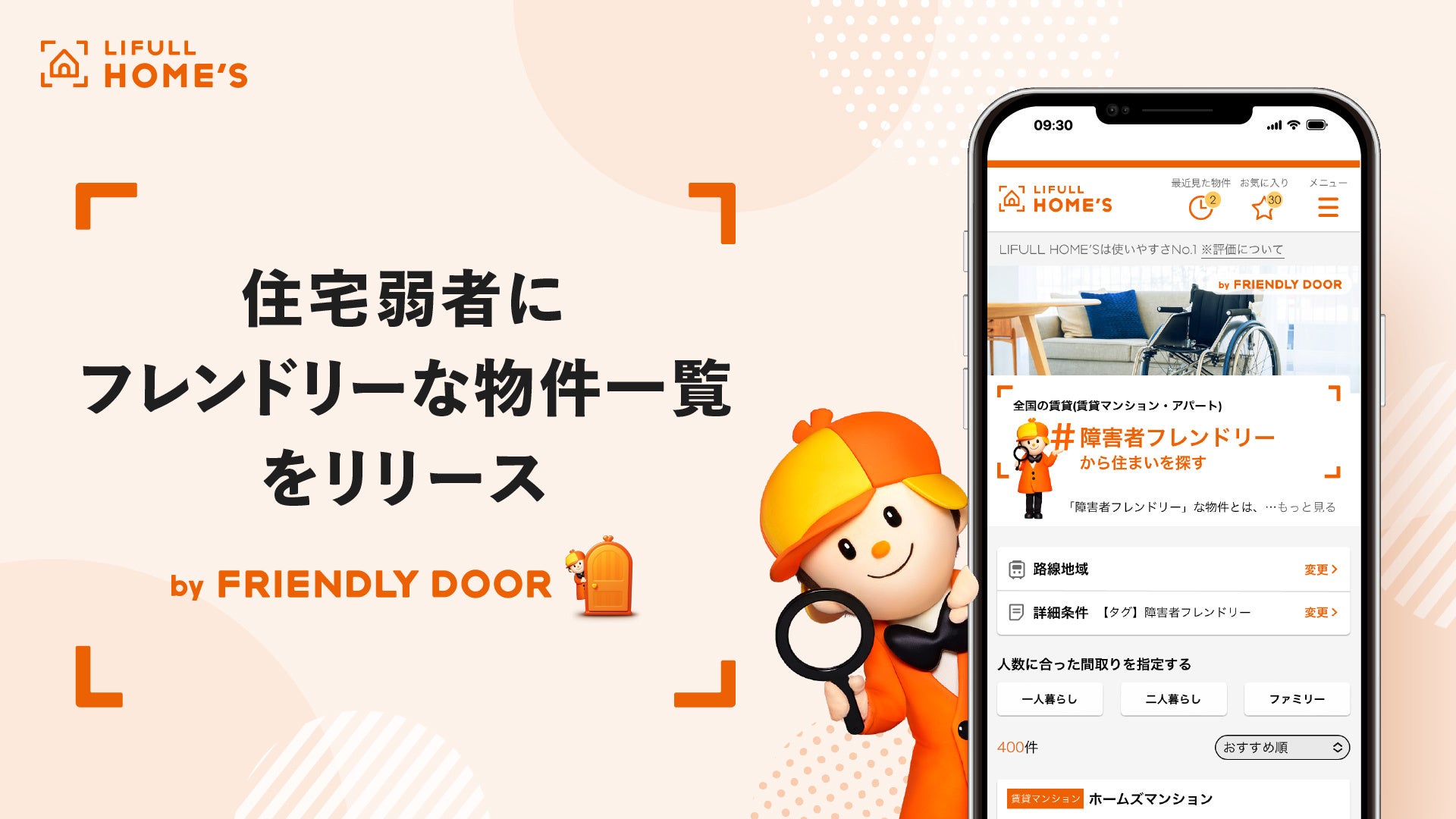 LIFULL HOME'S「FRIENDLY DOOR」、住まい探しに困難を抱える住宅弱者に「フレンドリーな物件」一覧をリリース