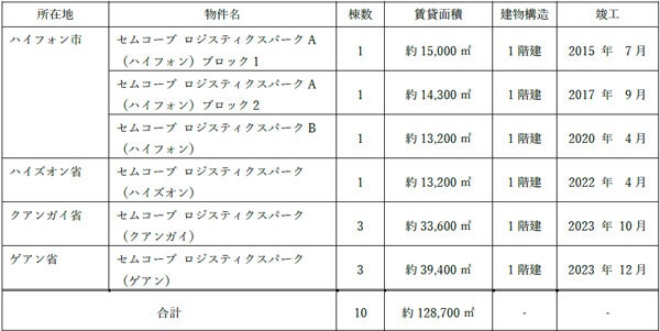 本物件は2025年秋頃の竣工を目指してまいりますが、竣工すればセムコープ インフラ サービス社を通じて運営する物流倉庫は、ベトナム北部の5棟(ハイフォン市内の4棟及びハイズオン省内の1棟)と中部の6棟(クアンガイ省内の3棟、ゲアン省内の3棟)を合わせて、計11棟・総賃貸面積約15万平方メートルとなります。