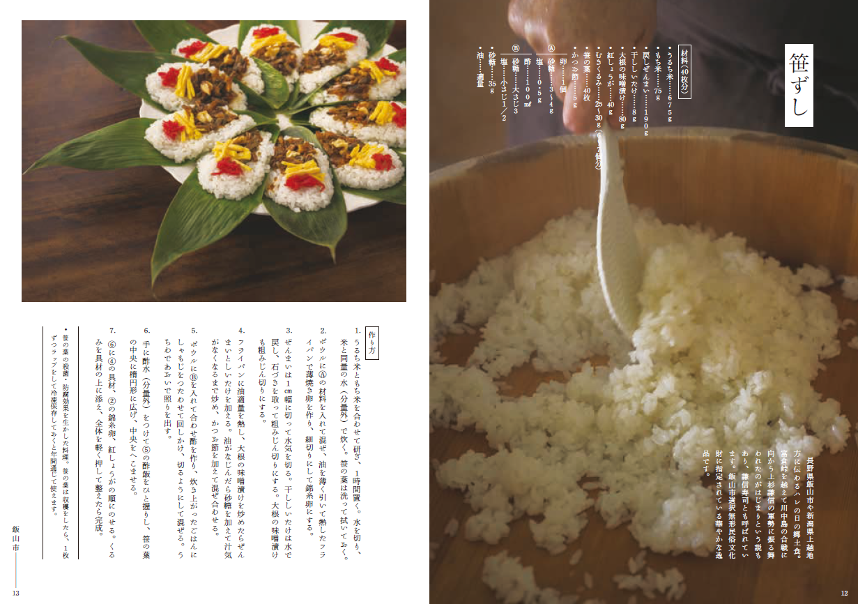 人寄せのおごっつぉう「のた餅」、暮らしの知恵が詰まった「塩蔵野菜の小谷風漬物」、山の鳥を保存して食す「うずらの糀漬け」など、信州の地に長く伝わる100のレシピを、長野のおばあちゃんたちに教えてもらいました。信州ならではの味と、四季折々ののどかな風景を楽しめる1冊です。