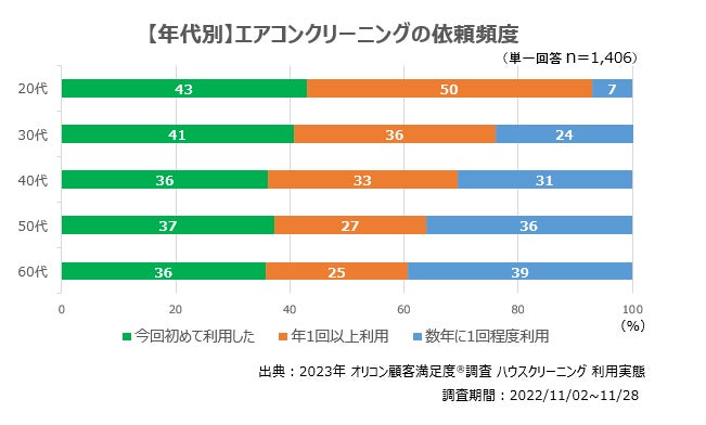 これらの結果から、どの年代も定期的にエアコンクリーニングを利用していますが、若い年代になるほどこまめにエアコンクリーニングを利用している傾向がうかがえます。