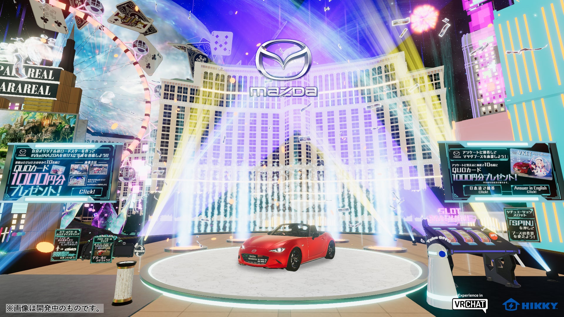 企業出展会場の1つであるパラリアルラスベガスに出展するマツダのブースでは、マツダを代表するライトウェイトスポーツカー「ロードスター」を、自分好みのデザインにカスタマイズして、パラリアルラスベガスの世界観&演出と一緒に写真撮影をすることができるオリジナルコンテンツを展開します。