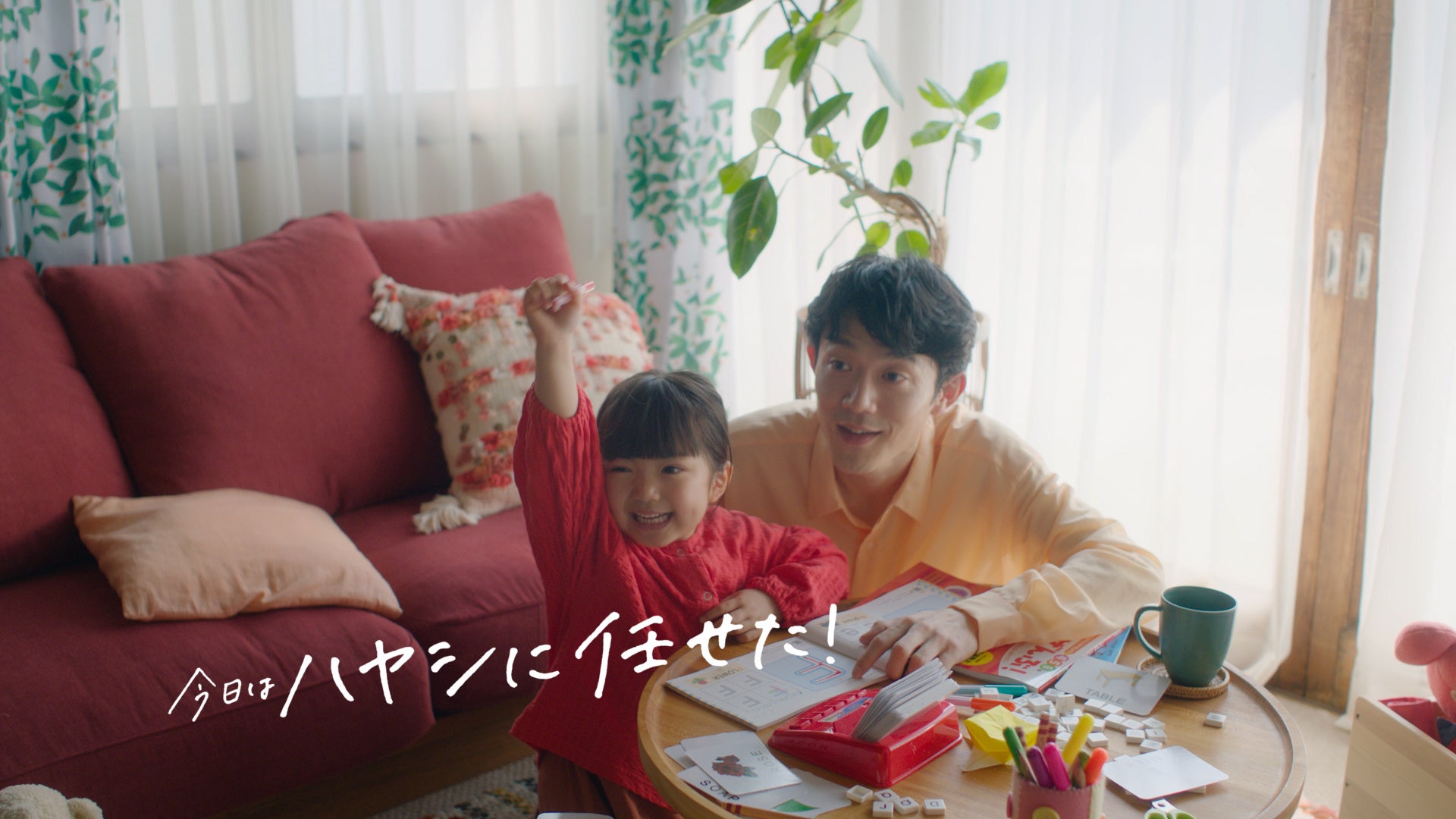 お母さんの「今日はハヤシに任せた!」の声に、勉強していたお父さんと娘もうれしそうに反応します。
