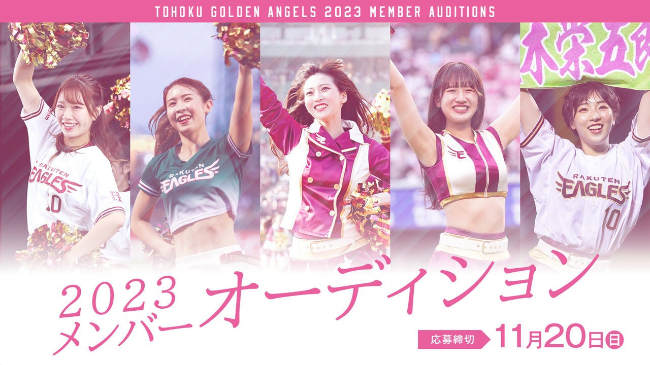 株式会社楽天野球団(本社:宮城県仙台市宮城野区、代表取締役社長:米田 陽介)は、楽天イーグルス公式チアリーダー「東北ゴールデンエンジェルス」の2023年新メンバーのオーディションの募集を10月20日(木)より開始することをお知らせいたします。