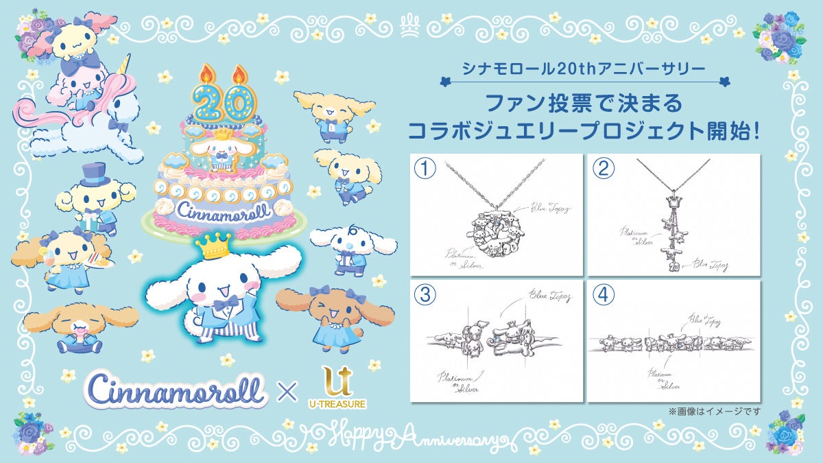 シナモロールデビュー20周年記念。コラボジュエリープロジェクト開催。SNS投票で4デザインから1位を商品化。3月18日(金)まで投票受付