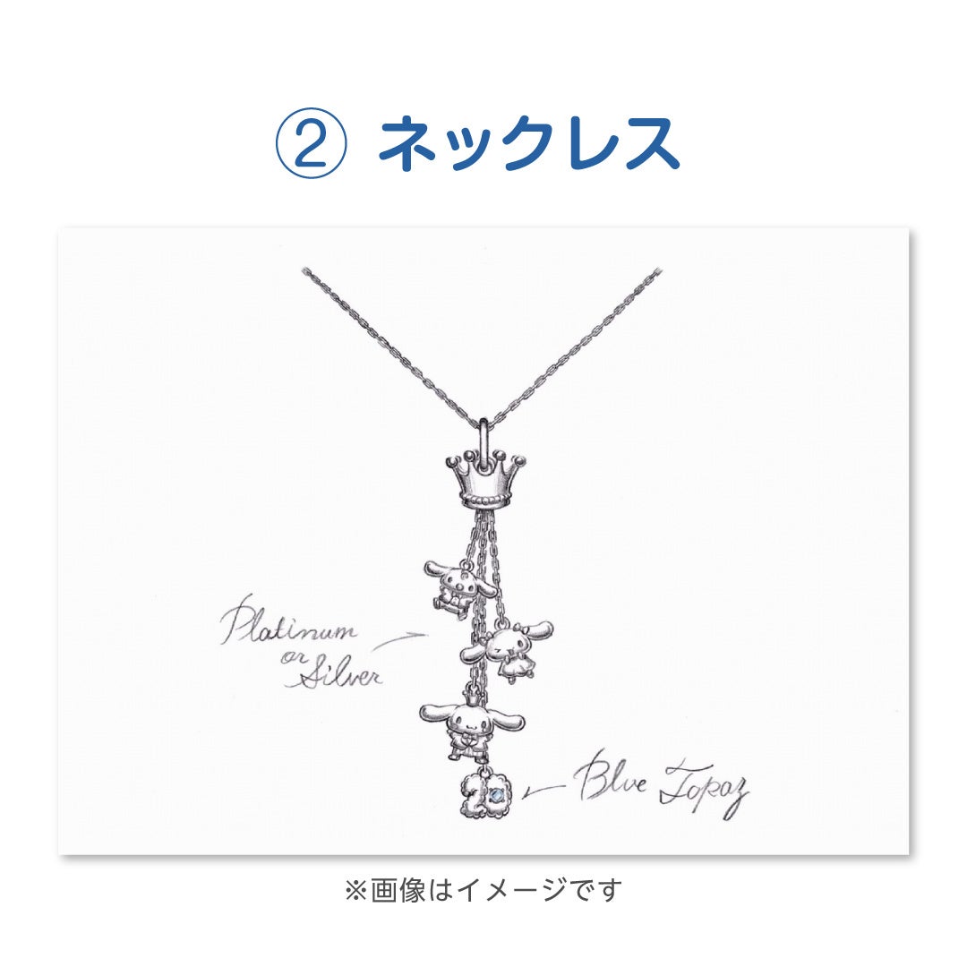 ②王冠モチーフと、シナモンとシナモンフレンズがデザインされたチャームが揺れるネックレス