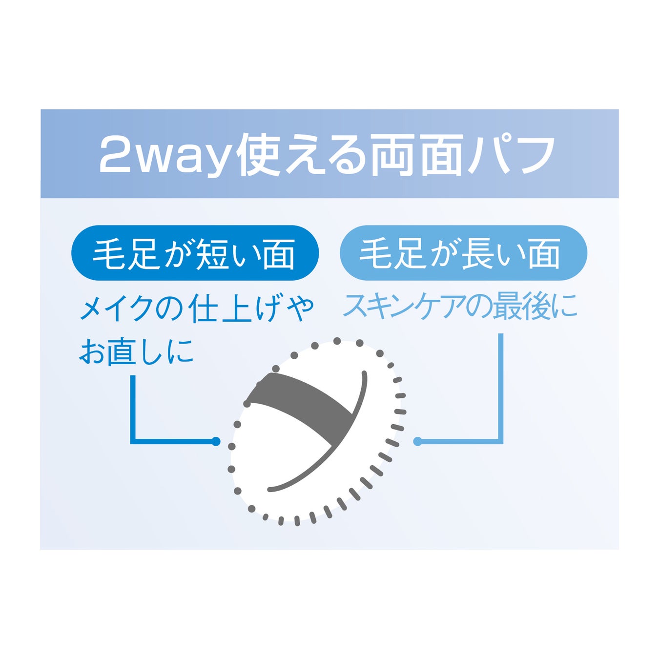 パフに適量をとり、肌を軽くおさえるようにつけます。