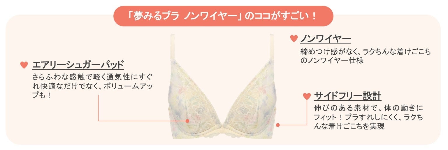 どちらもふんわりボリュームアップ!大人気フィット「夢みるブラ」がワイヤー入り&ノンワイヤーの2タイプで登場