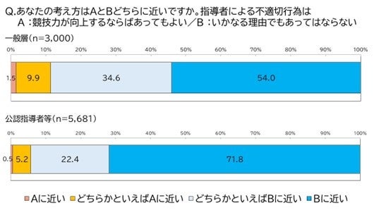 「いかなる理由でも、指導者・コーチによる不適切な行為はあってはならない」と回答する割合: