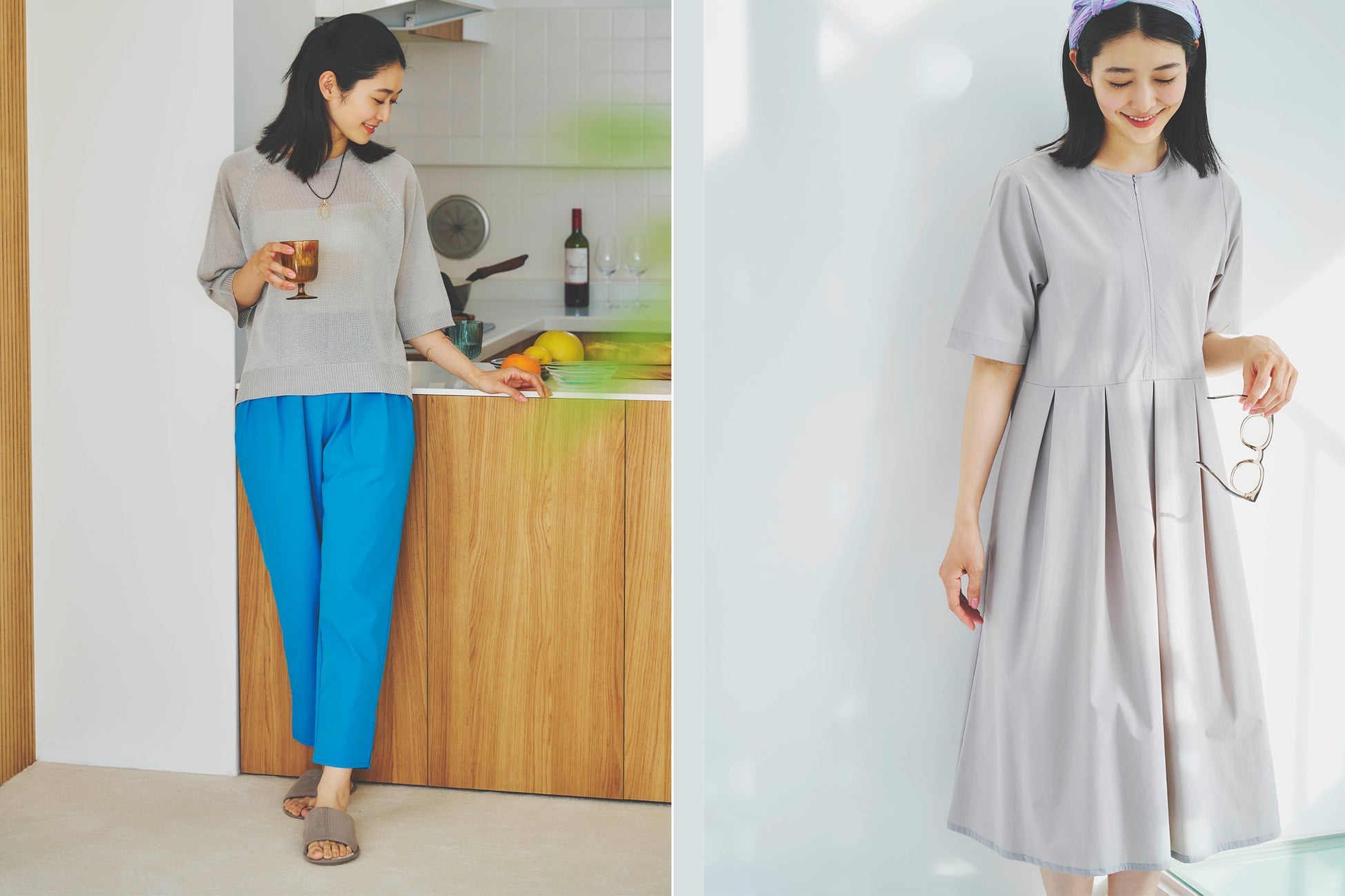 接触冷感・吸水速乾で肌にまとわりつきにくく、暑い夏も涼しく快適に過ごせる「【接触冷感・速乾】2WAYワンピース」「【接触冷感・速乾】タックテーパードパンツ」の新色が登場