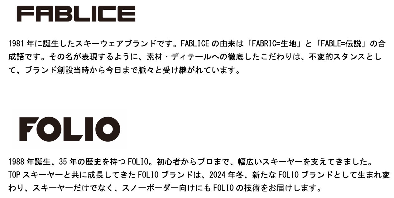 昨今、ウィンタースポーツ人口は縮小傾向にありますが、小さなスキーショップから始まったアルペンでは、より多くの方にウィンタースポーツの楽しさを知ってほしいという想いを基に、プライベートブランドの強化を続けております。現在はkissmark/Hart/FABLICEそして今年復活したFOLIOの4つのプライベートブランドを展開し、初心者の方も気軽に始めやすい価格設定ながら、機能性も備わった商品を提供し、皆様のゲレンデデビューを応援いたします。