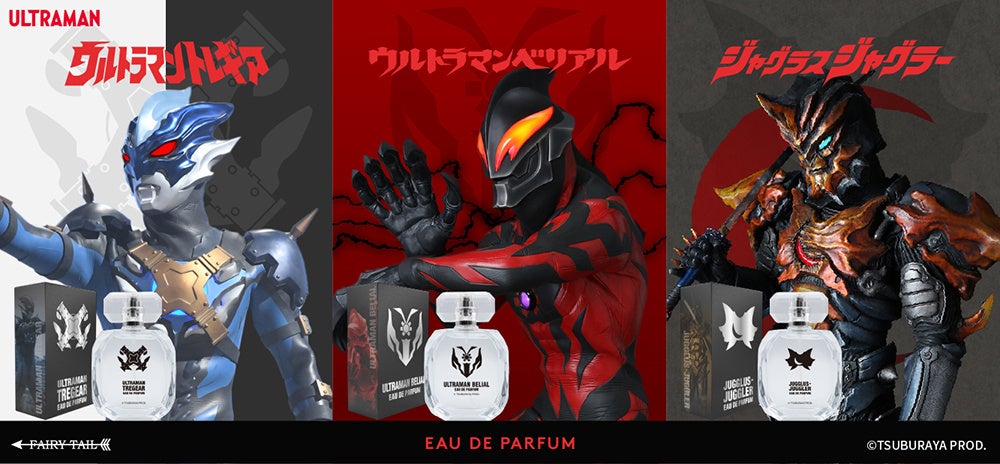 香水の輸入販売を手がけるフェアリーテイル株式会社(東京都港区)は、ウルトラマンシリーズから、ウルトラマンベリアル、ジャグラス ジャグラー、ウルトラマントレギアをイメージした香水を発売します。