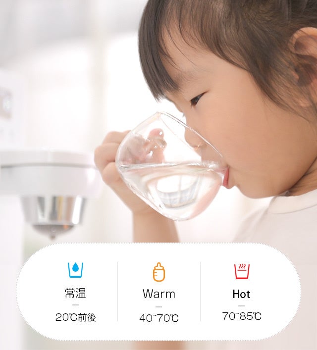 水道に接続すれば、水を入れる手間が省けます。貯水タンクは4Lで、ウォーターサーバーとしてもお使いいただけます。