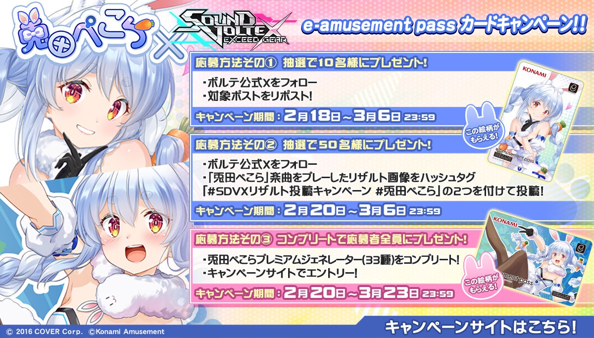 「『兎田ぺこら』×『SOUND VOLTEX EXCEED GEAR』 e-amusement passカードキャンペーン‼」詳細