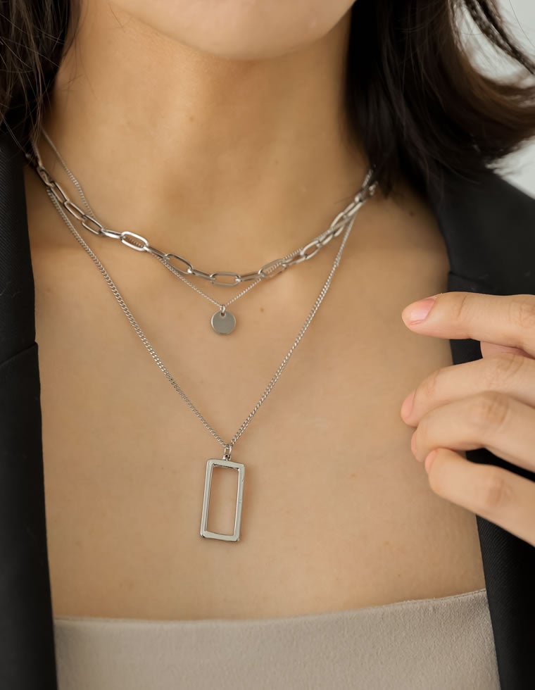 商品名:[2点セット]スクエアモチーフ付ネックレス