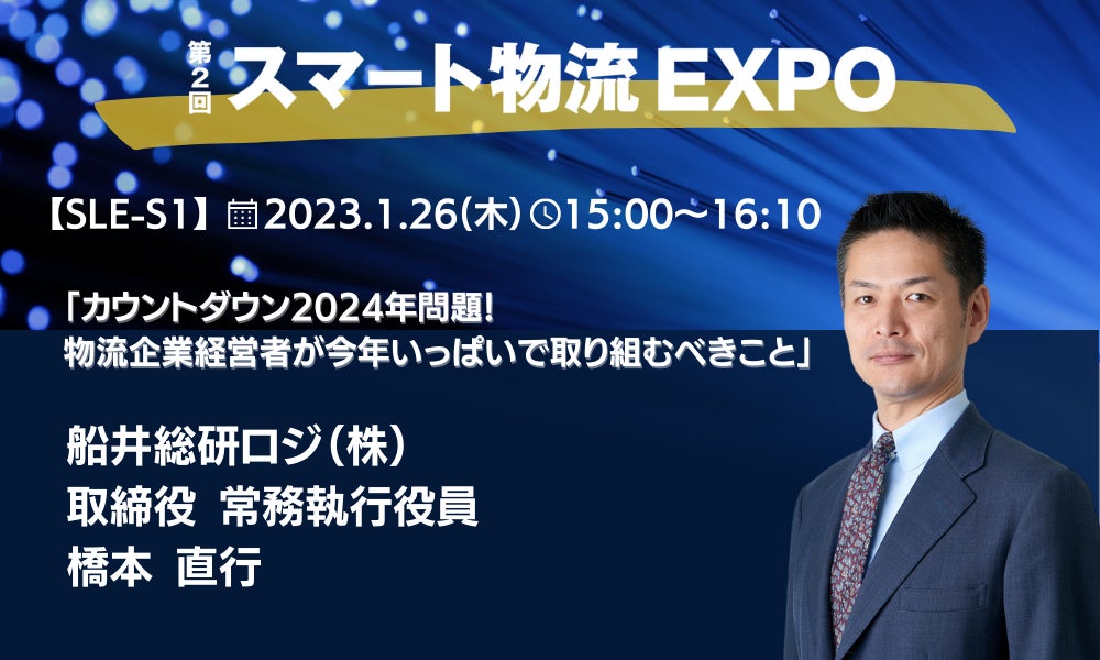 ロジスティクス・物流コンサルティングサービスを提供する船井総研ロジ株式会社(本社:東京都千代田区、代表取締役社長:菅重宏、以下「船井総研ロジ」)は、2023年1月26日(木)に開催される「スマート物流EXPO(主催:RX Japan株式会社様)」にて、取締役 常務執行役員 橋本 直行が、同時開催セミナーに登壇いたします。