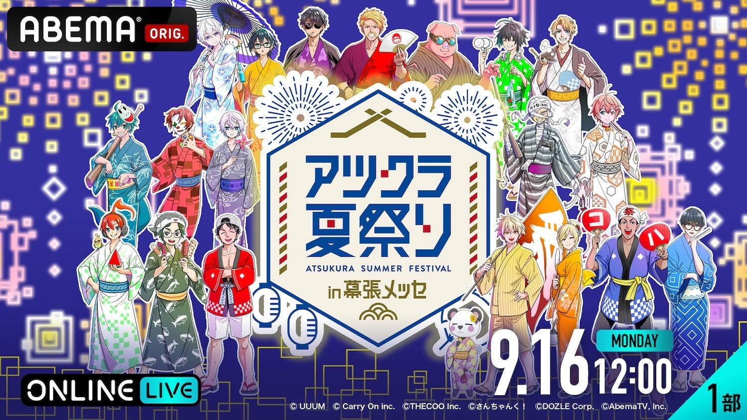 【ABEMA】9月16日(月・祝)開催、アツクラの人気配信者20名が幕張メッセに大集合!アツクラ夏祭りを再現した初のリアルイベント『アツクラ夏祭り in 幕張メッセ』来場チケットの全席種が完売