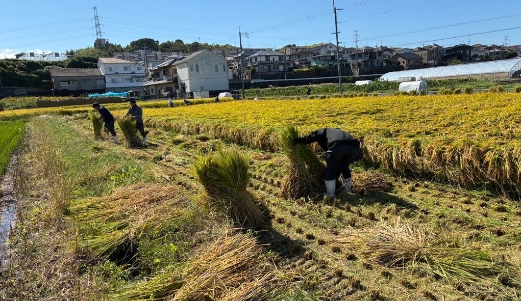 全国的な米不足が懸念される中、今年は昨年の約2倍となる2,700㎡の田んぼで稲作を行い、10月23日に収穫を終えました。収穫量は約1.4トンを見込んでおり、地域農業の活性化を推進しています。