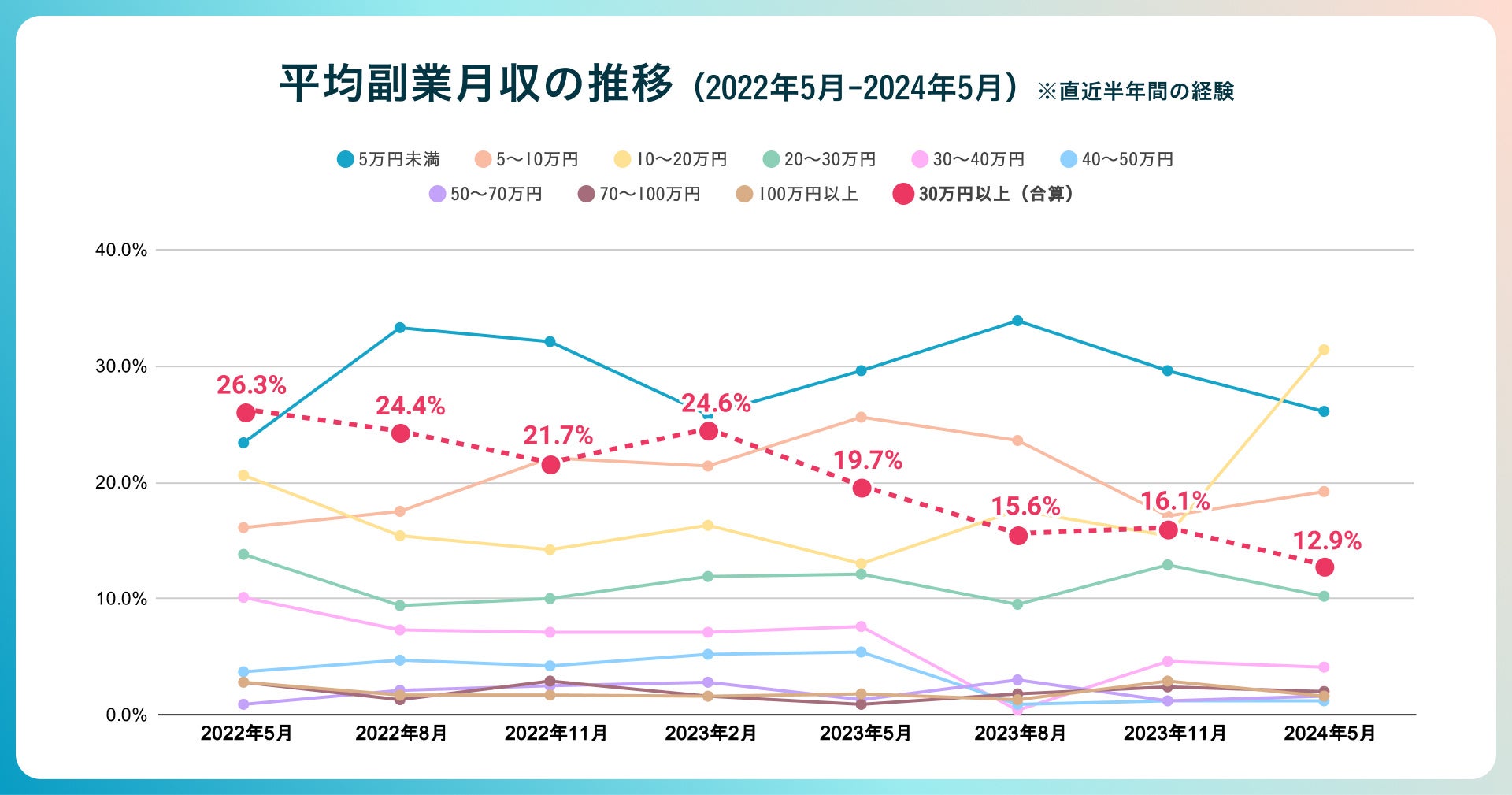 ・月額30万円以上を稼ぐ副業者が2022年から徐々に減少、5月は過去最低