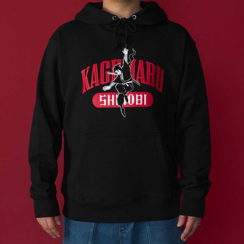 使い勝手抜群なパーカーに漫画界を代表する忍者をデザインした。バックもフロントも、ともにカッコ良い贅沢なアイテムとなっている。