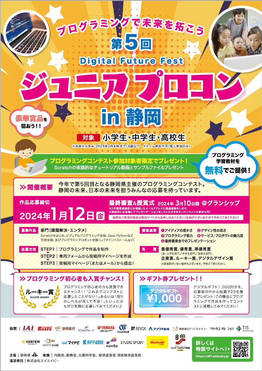 「第5 回Digital Future Fest ジュニアプロコンin 静岡」の最終審査会・授賞式の開催