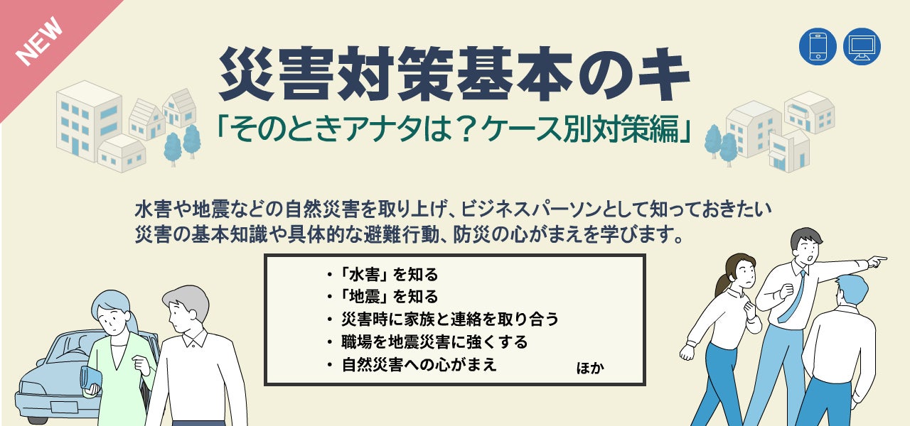 eラーニング『災害対策基本のキ「そのときアナタは?ケース別対策編」』防災の日 9月1日開講