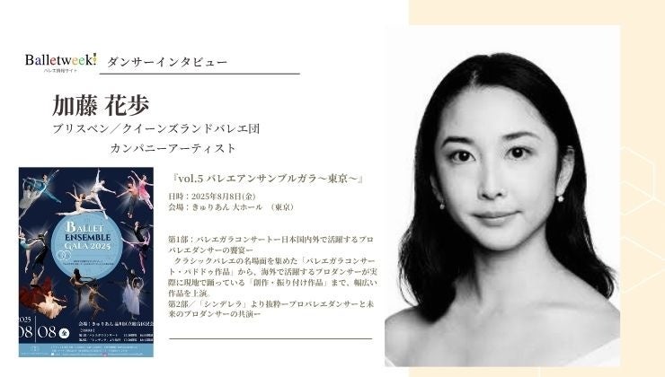 8月8日~きゅりあん 大ホールにて『バレエアンサンブルガラ2025~東京~』にご出演のクイーンズランドバレエ団 加藤 花歩さんのバレエ団生活の様子、今回の公演への意気込みをインタビューしました!
