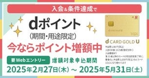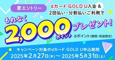 株式会社 NTT ドコモ(以下、ドコモ)は、新たなクレジットカード「dカード GOLD U」の提供開始を記念して、お得な5つのキャンペーンを、 2025 年 2月 27 日(木)から開催いたします。