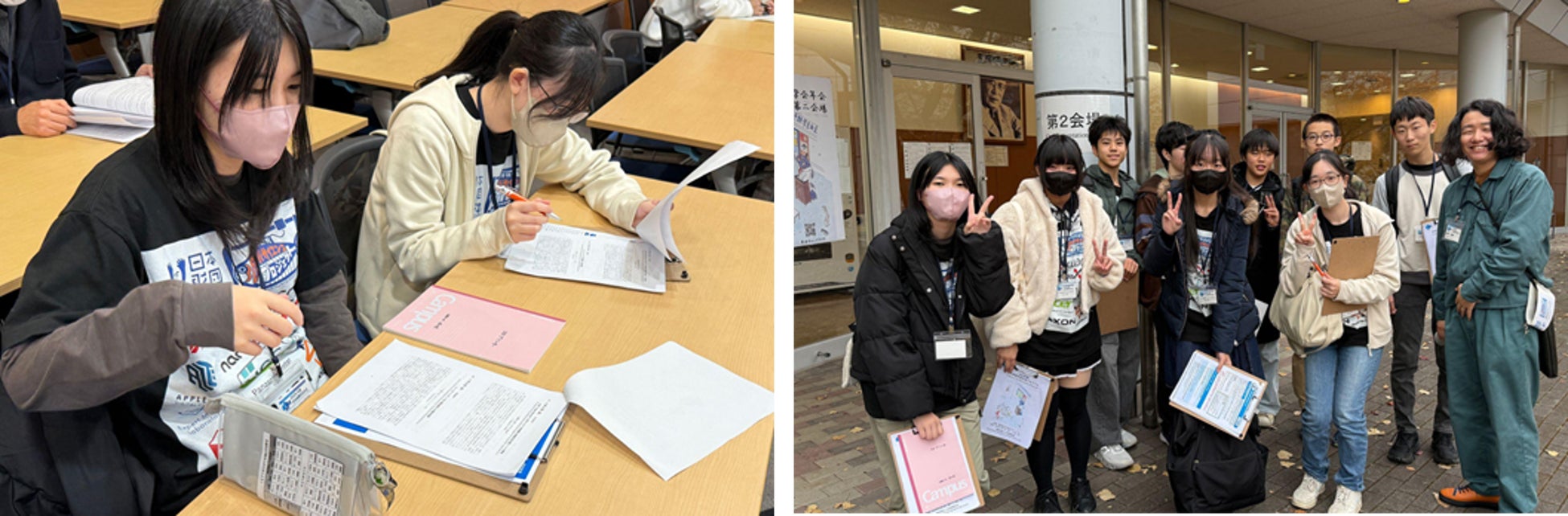 最新の研究成果が次々と発表される中、会場に張り詰める心地よい緊張感に包まれながら、スクリーンを見つめ、聴き入る研究生たち。事前に講演要旨集を読んで予習して臨みましたが、研究者の生の声を「聴講」することは全く別の体験です。論理的な説明の端々からにじみ出る熱意や、研究の社会的意義の重みが、研究生たちの心に深く刻まれました。